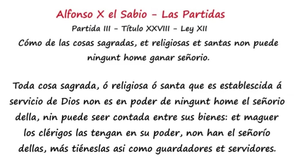 Idea de servicio público: Aunque el término “servicio público” es anacrónico para el siglo XIII, ya en la mentalidad jurídica de Alfonso X se percibe la noción de que los bienes ligados al culto tienen una utilidad para el bien común, no sólo para el clero.
